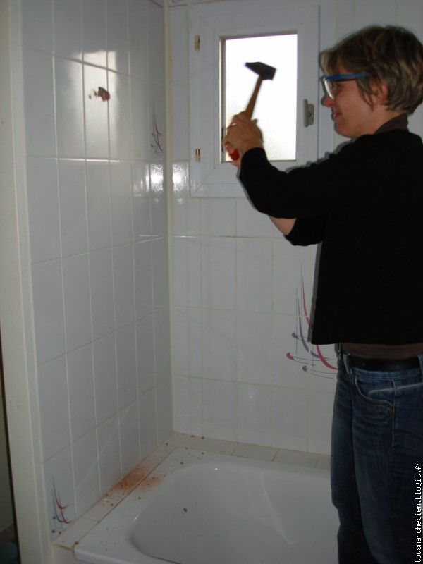 la rénovation de la salle de bain "2 ° étape dégagemenent baignoire et carrelage"