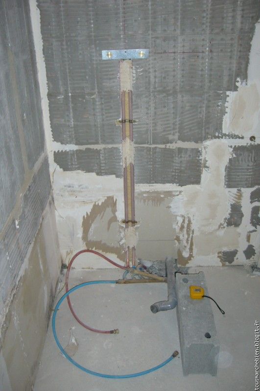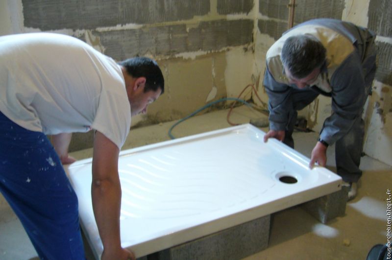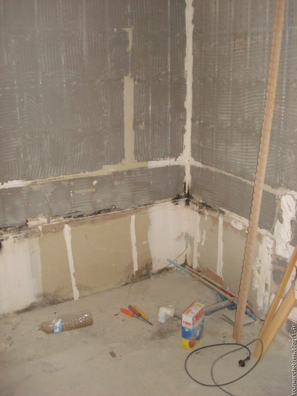 la rénovation de la salle de bain "3 ° étape mise en place du receveur et pose de la plomberie"